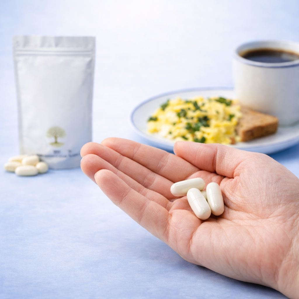 NAC 600 + NAD+ can be taken at any time of day. Many people prefer taking it with breakfast or lunch for consistency. Taking it with food may help improve comfort and absorption. The most important factor is daily consistency, not timing.
